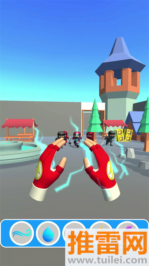 2、遇到密集敌人先用“土+电=范围吸附”聚怪,再接高伤技能,避免漏怪导致平民被波及。