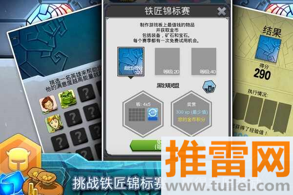 1、玩家通过三消玩法获取基础材料,将矿石、木材等元素组合成武器部件,每件装备需由三个对应部件完整拼装而成。