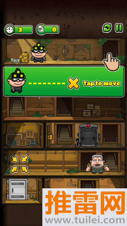 1、每一关都给你一张简易地图,目标物品用红圈标好,拿完不算完,得原路摸回出口,少一步都触发警报。