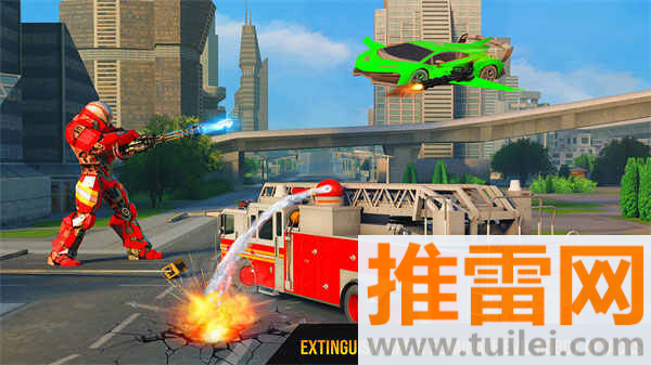 飞行消防车这游戏一听名字就带感——不是在地上堵车的普通消防车,而是能飞上天、会变形、还能打坏蛋的未来救援机甲,你扮演的不只是消防员,更像是城市守护者:火灾警报一响,立马腾空而起,几秒内飙到高楼顶上,一边喷水灭火,一边顺手把搞破坏的机械恶棍揍趴下,操作不复杂,左边控制方向,右边点火开大招,还能在消防车、飞行模式和机器人之间一键切换,玩着玩着,孩子不仅能记住“火警要快”,还能认全水炮、云梯、破拆工具这些装备怎么用,算是边打怪边学安全知识了。