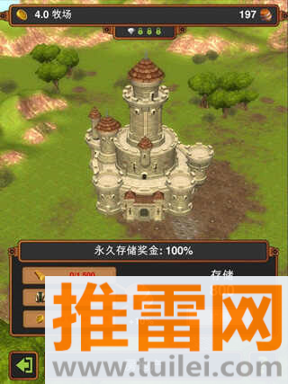 5、返回主界面点击仓库,消耗金币点击“+”号扩展容量;点击城堡可查看任务与激活增益技能。