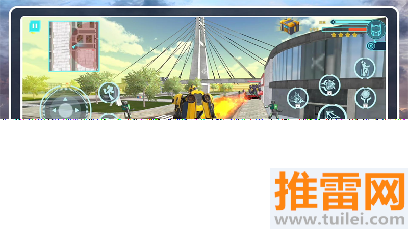 3、变形键在射击区旁边,图标实时显示当前形态,点一下切车,再点切机,长按三秒直接变回机甲,方便紧急落地。