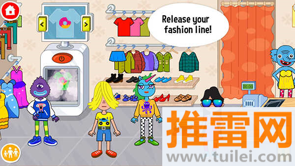 2、服装店提供DIY面板,能把随手画的涂鸦贴到T恤,像素块瞬间变个人签名,穿去电梯里招摇,NPC还会指点评头论足。