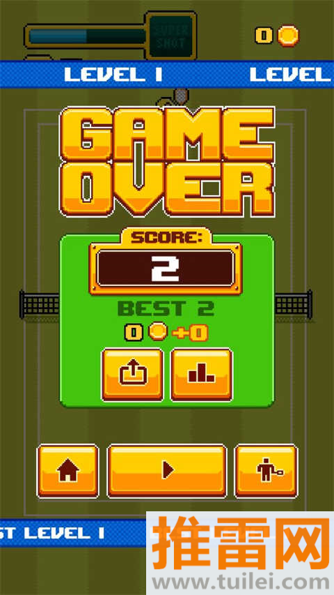 1、开局送你一个像素大爷,球拍是木头片子,打赢三场就能解锁拿电锯当拍子的伐木工,击球带火花,纯属吓唬人但好用。