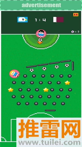 2、很多障碍物都是有规律地在移动,别急着出脚,先花几秒钟观察一下它们的运动轨迹,找到那个转瞬即逝的空隙再射门。