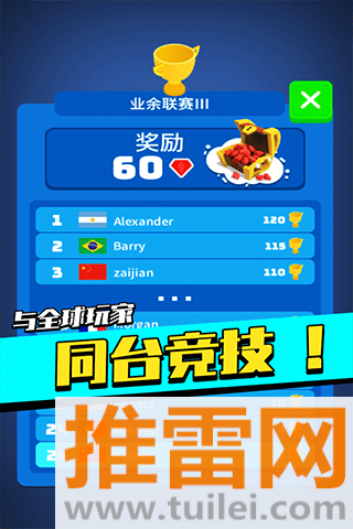 4、全球玩家实时匹配,打完一局马上出排名,连胜还能冲上地区榜单。