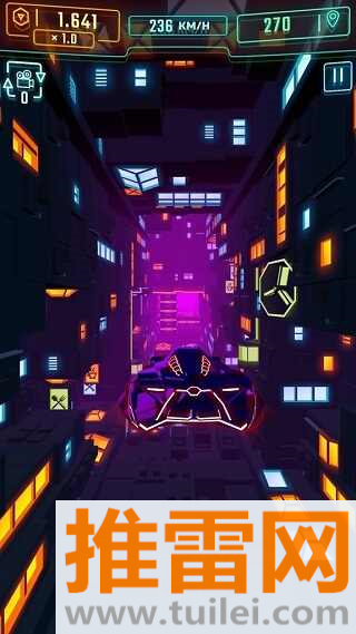 霓虹飞车最新版(Neon Flytron)不是那种光靠漂移和氮气撑场面的普通赛车游戏,它更像是把你塞进一个高速运转的赛博都市夜景里,让你开着会发光的未来战车在铁轨、风扇和移动桥之间玩命穿行,操作简单到一根手指就能搞定,但节奏快得让你手心冒汗——前面是迎面驶来的列车,头顶是呼呼转的巨型风扇,旁边还有乱窜的车流,你得一边躲障碍,一边捡道具,还得找准时机超车,游戏画面全是高饱和的霓虹紫、蓝、粉,配上节奏感拉满的电子乐,跑着跑着真有种在打音乐节奏游戏的错觉,别看它体量不大,但关卡设计贼有想法,每过几秒就给你来个新花样,根本停不下来。