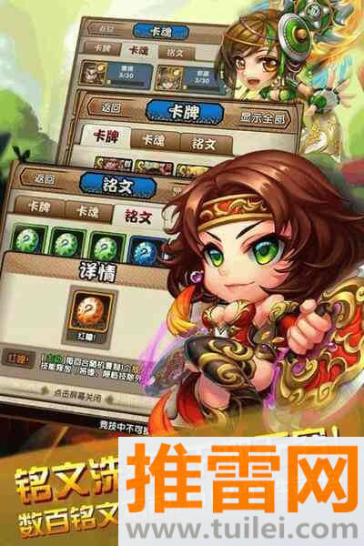 3、武将卡牌不光能升级,还能通过镶嵌铭文来DIY,同一个武将,不同的人能玩出完全不一样的套路,个性化十足。