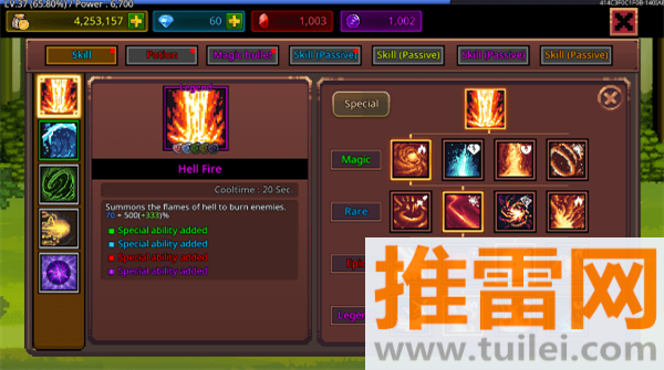 4、碰到打不过的关卡别死磕,多去前面的关卡挂机刷点材料把技能等级提上来,或者换一套克制敌人的魔法组合再来尝试。