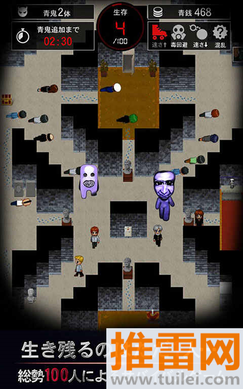 2、青鬼分三种体型,高速瘦子专堵过道,胖子一屁股坐半张图,看见影子就拐弯能省半条命。